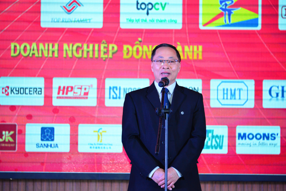 Ông Huang Peiquan - Giám đốc Công ty TNHH Máy móc LK Việt Nam phát biểu tại Ngày hội việc làm lần 2 năm 2025